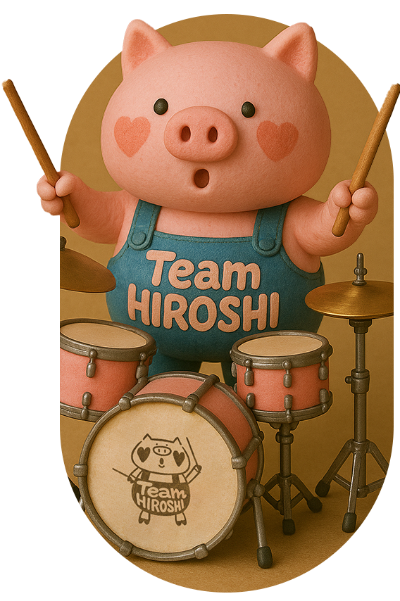 ドラムを購入したときに、「某有名ねずみキャラクターとセッションしたい」という目標を立てて、いろんなところで言い続けてたらひろしさんに繋がって入団になりました!これ結構スゴいなって思ってます(笑)。最近では金色の楽器にあこがれてトロンボーン始めました。