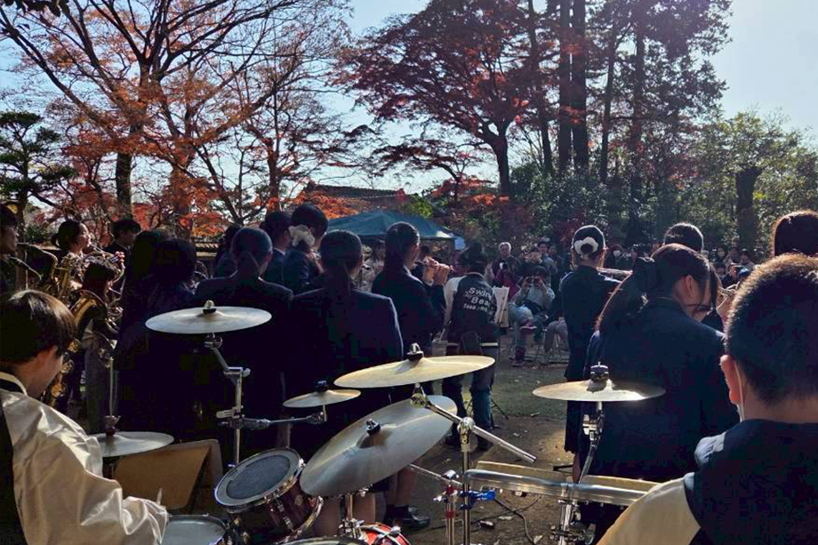 旧吉田邸の藁ぶき屋根葺き替え工事が完了した今年の華乃井市場にて、リニューアルを記念して開催されたイベントで演奏させていただきました。ライブ最後には、県立柏高校吹奏楽部の皆さんに飛び入り参加していただきました。